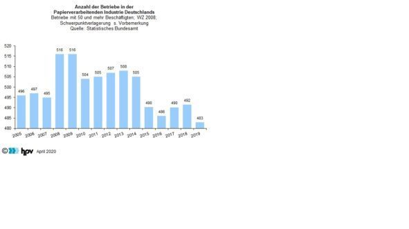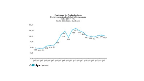 - Die Papierverarbeitende Industrie konnte sich der industriellen Rezession in Deutschland nicht entziehen. Gleichwohl wurde sie bislang nicht so stark getroffen wie die Industrie insgesamt: Während die Produktion des gesamten Verarbeitenden Gewerbes 2019 um 4,6 Prozent unter dem Niveau des entsprechenden Vorjahreszeitraums lag, war in der Papierverarbeitenden Industrie gleichzeitig ein Rückgang in Höhe von 0,8 Prozent zu verzeichnen.